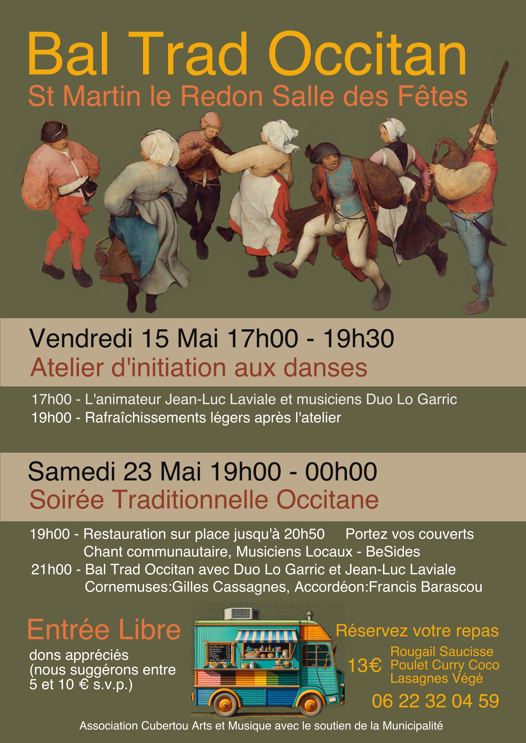 Duo Lo Garric (Gilles Casagnes: Cornemuses and Francis Barascou: Accordion) with Jean-Luc Laviale: Dance Animateur, will be responsible for the traditional dance music for both 26th April and 2nd May.